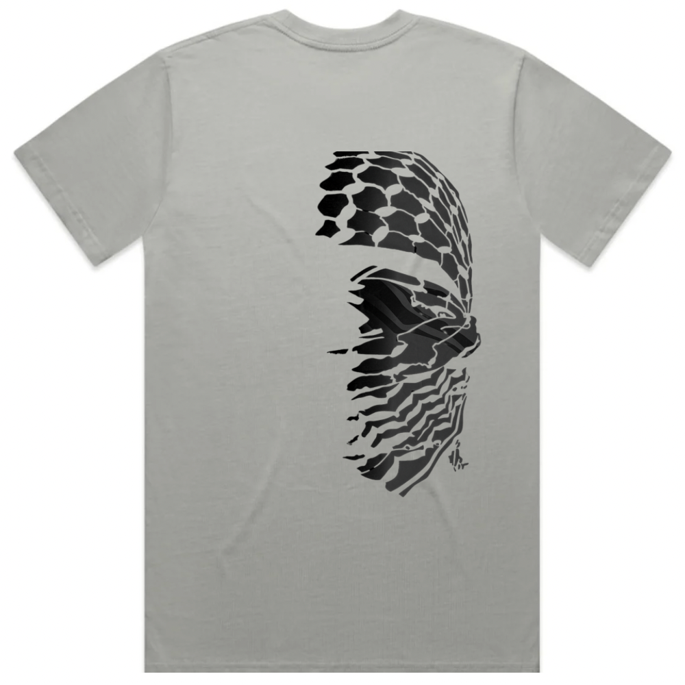 Wrap yourself in a powerful symbol of resilience with our Keffiyeh Resistance T-Shirt. Featuring a bold back print of a face wrapped in the iconic Palestinian Keffiyeh, this piece carries deep cultural meaning and pride.